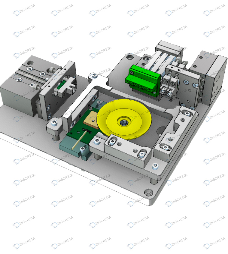 Контактное устройство, которое возможно использовать как в автоматической линии с 6ти осевым роботом, так и на полуавтомате, загружая блоки управления вручную.