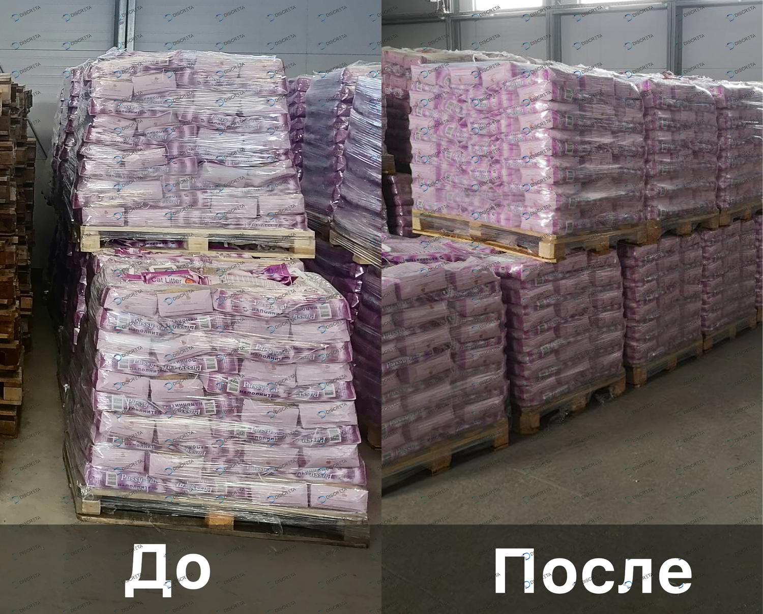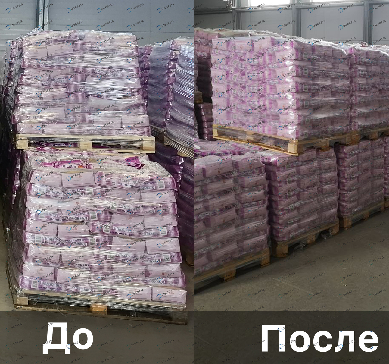 Паллетирование мешков с наполнителем туалетов домашних животных