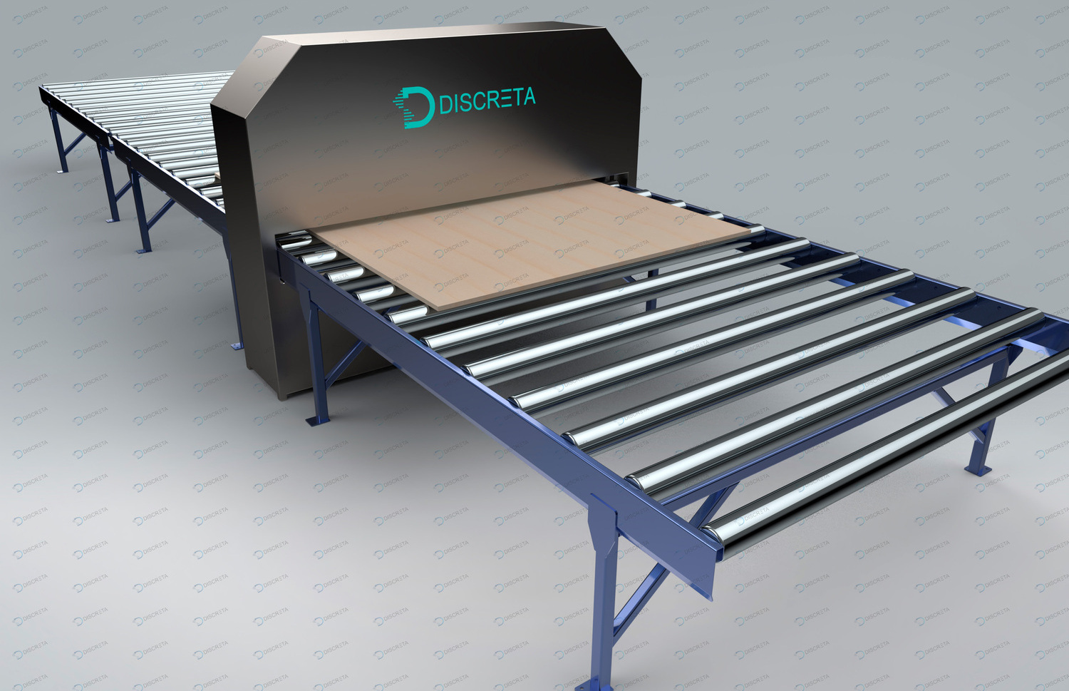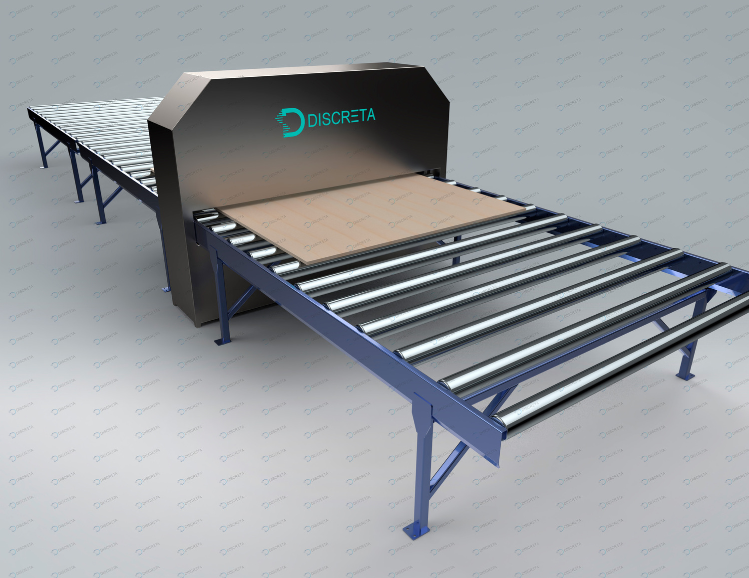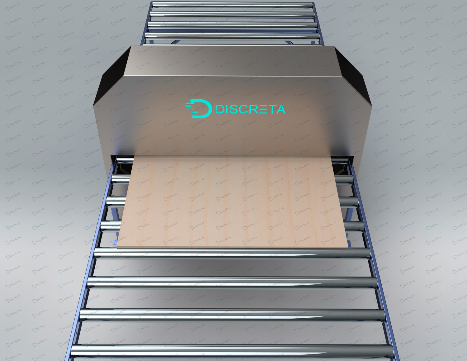 Контроль качества ДСП плит. Поиск загрязнений маслом, посторонних включений, сколов, пузырей, термополос, трещин. Скорость 300 плит в час. Длина продукта 2800 мм. Комплекс состоит из уникальной измерительной части, системы подсветок, программного обеспечения на базе классических алгоритмов и нейронных сетей.