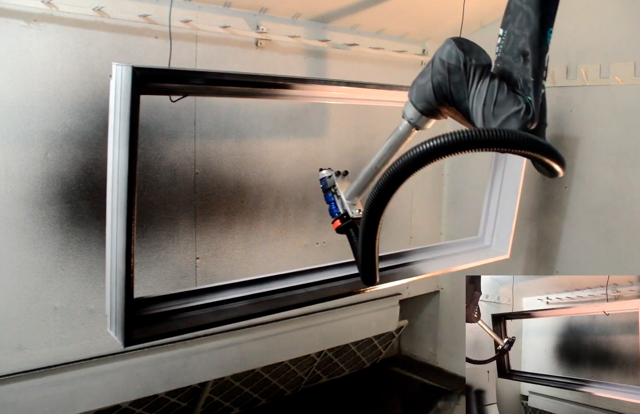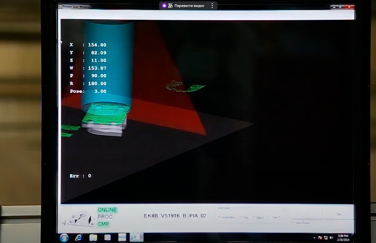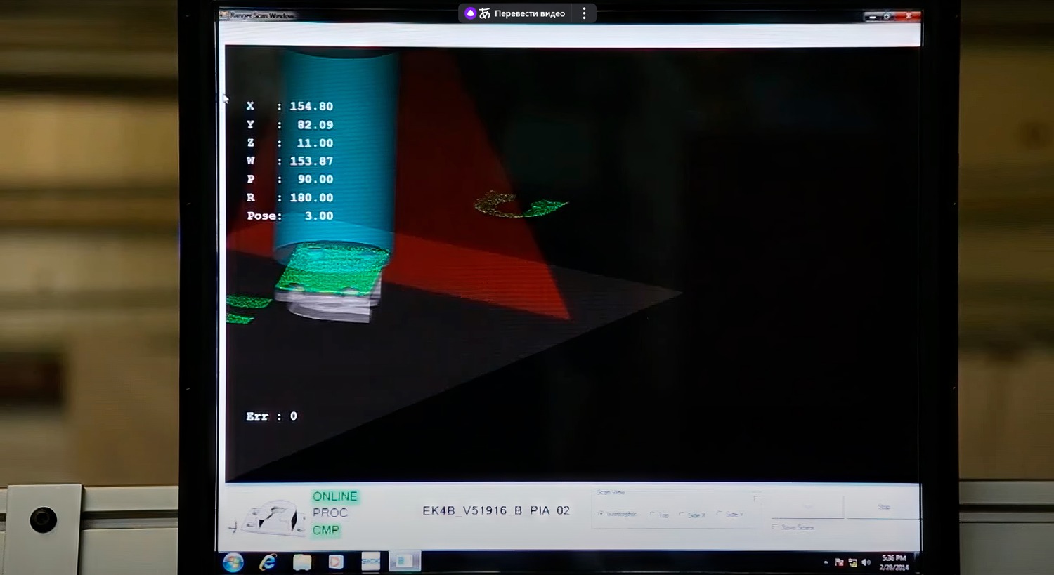 Измерение профиля заготовок перед роботизированной порошковой покраской для автоматического выбора программы покраски роботом. Заготовка проходит через сканирующий лазерный луч, с помощью датчика обратной связи измерительные линии суммируются в массив координат, отображающих плоскость изделия, по размерам изделия система управления роботом понимает какое изделие подлежит покраске и передает команду роботу на выполнение. Точность определения размеров до 0,1 мм. Такт поступления изделий на покраску – 1200 изделий в час.