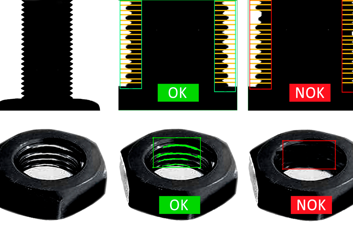 Сортировка изделий после измерения геометрических параметров, по видам брака. Брак резьбы, брак диаметра, брак торцевой части, брак основного размера. Система состоит из камеры, макро объектива, подсветки, промышленного компьютера с панелью управления и программного обеспечения, с заложенным алгоритмом отбраковки.