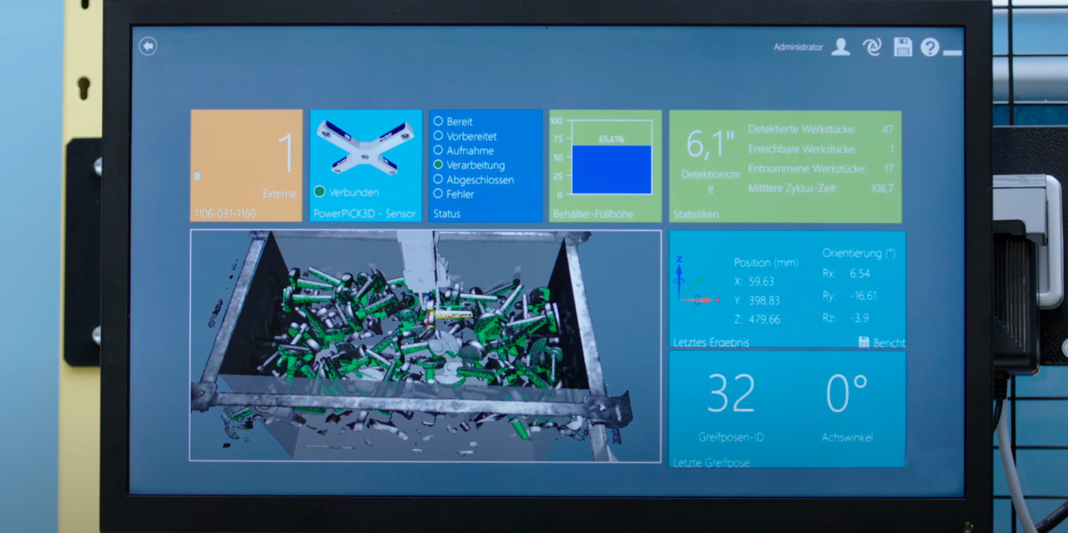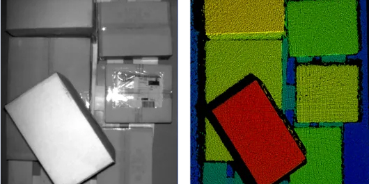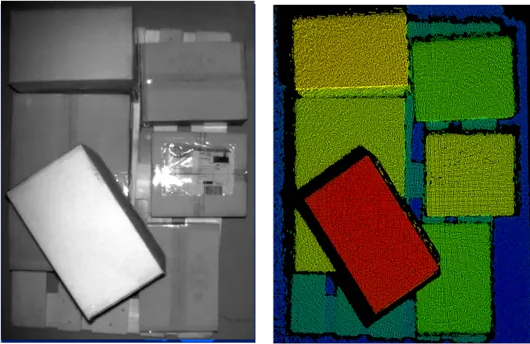 Задачи выгрузки из корзины деталей, расположенных россыпью или снятие с паллеты продукта выполняется связкой робота и системой технического зрения.