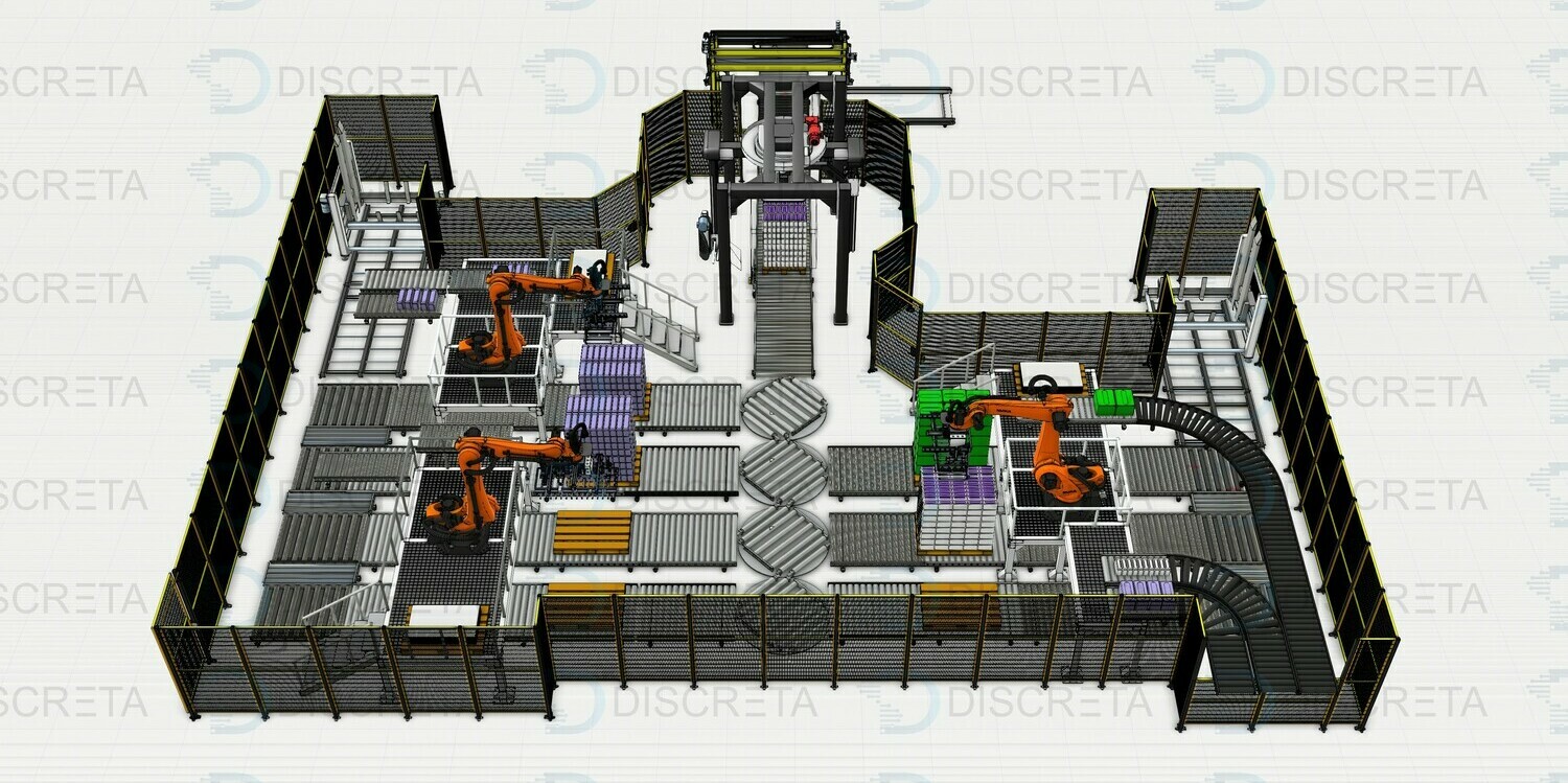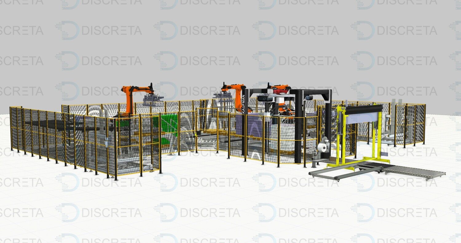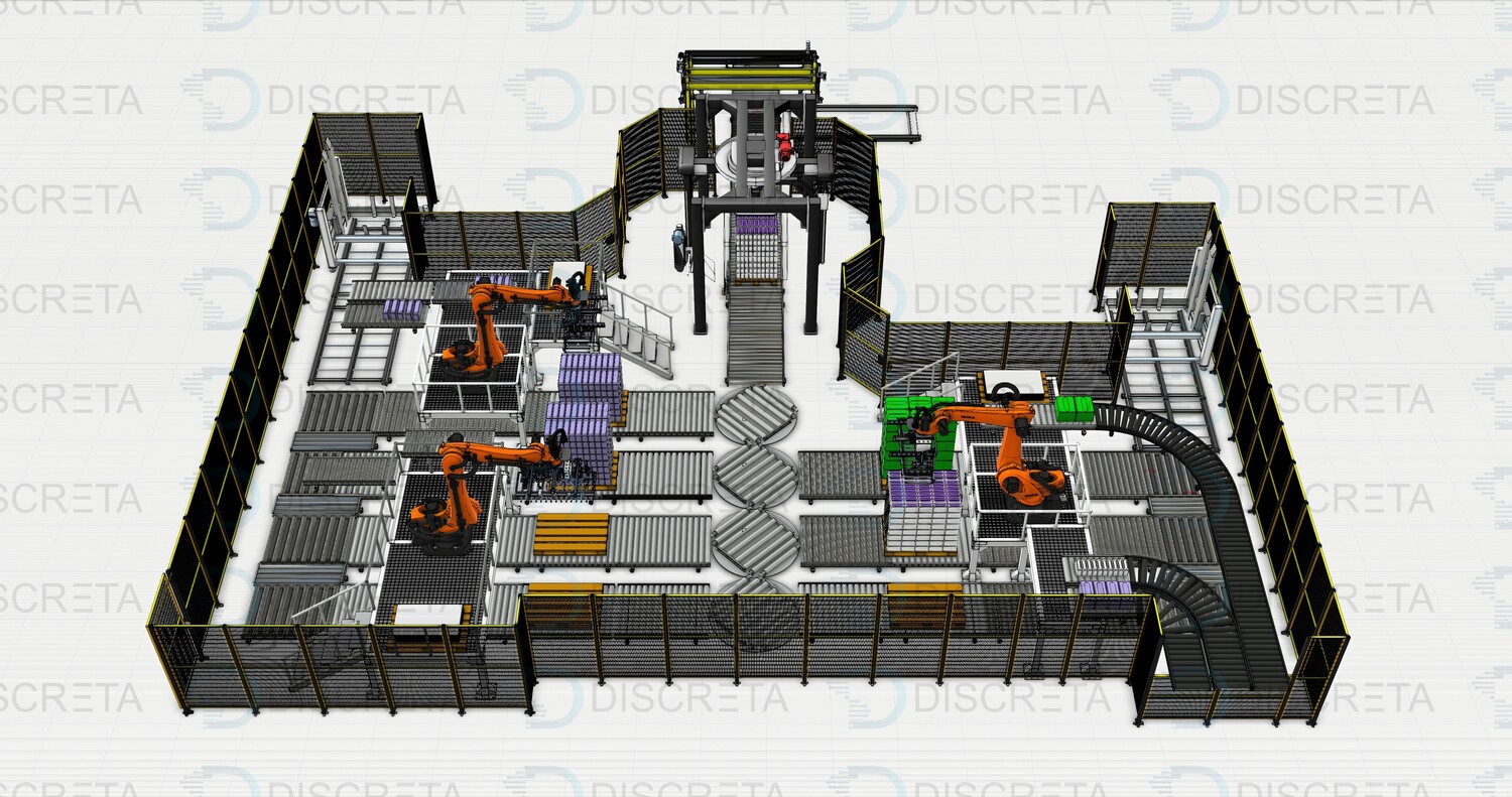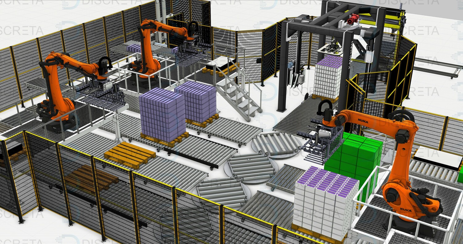 Паллетирование продукции в групповой упаковке позволяет собирать с различных линий продукцию одним или несколькими роботами с высокой производительностью захватывая сразу несколько упаковок роботом. Сортировка и поиск продукции на конвейере осуществляется системой датчиков или машинным зрением. Данные системы заменяют несколько человек в смену