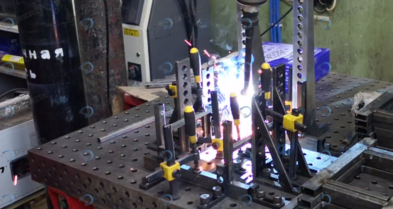 Комплекс производит сварку предварительно собранных оператором изделий на сварочном столе. Во время работы комплекса робот производит сварку на одном столе, а оператор при этом производит сборку на другом. Данный принцип работы исключает простой робота, а также позволяет увеличить производительность. Также комплекс оснащён удобной панелью управления, позволяющей выбирать программу, а также корректировать положение сварочных швов при необходимости.